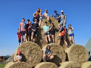 Pak jsem ještě vyfotil (na budoucí plichtík) atlety malebně rozmístěné na pyramidě balíků slámy a pokračovali jsme dál.