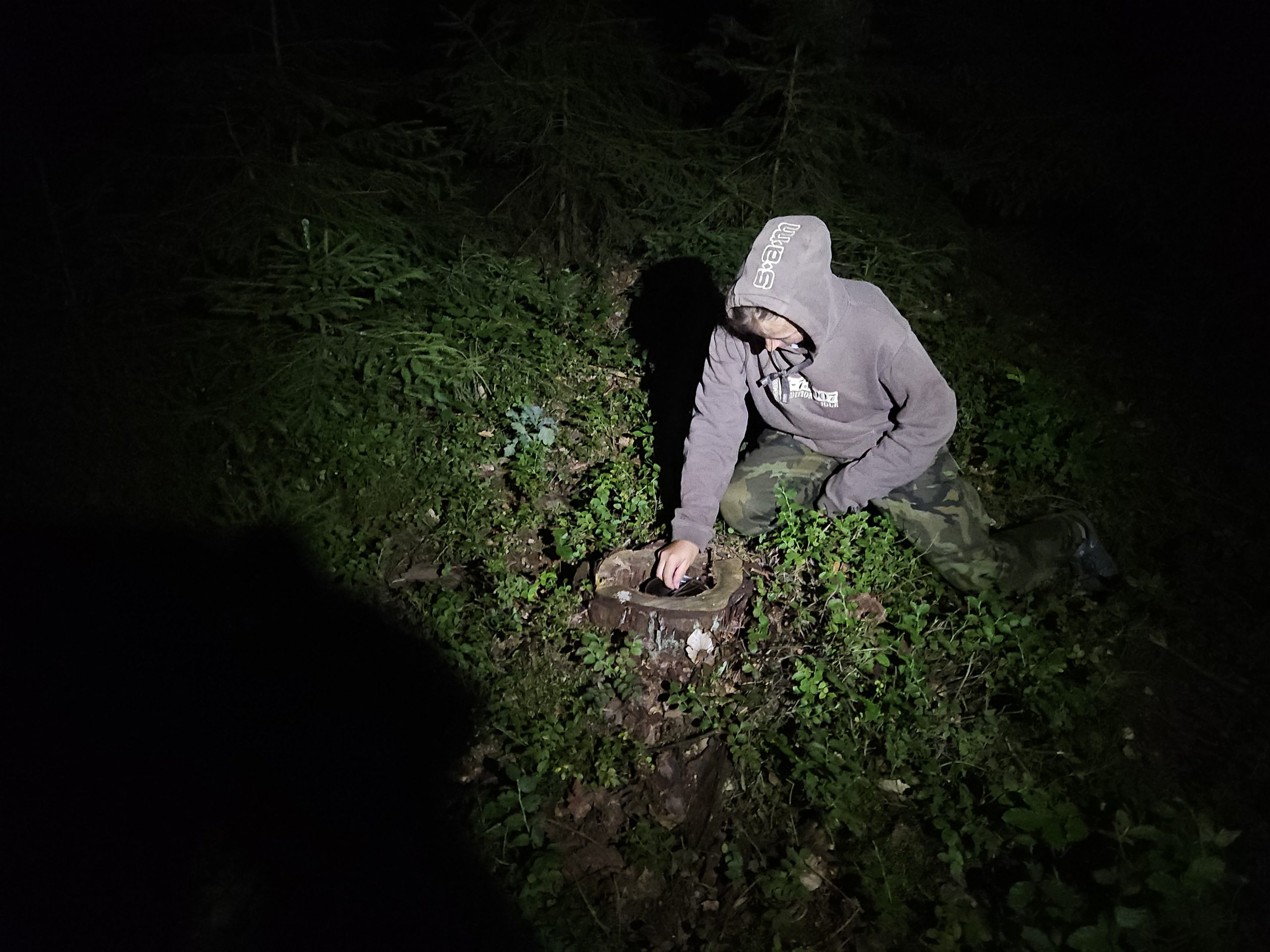 Jakkoli by se mohlo zdát, že dnešní program končí – tak ne, ještě nebyl konec. Ještě jsme vyrazili do lesa na noční hru Majáky. Hrála se tam, kde se hráli nedávní Indiáni. Měli jsme čtyři majáky, které se rozmístily po lese, před sebe postavily prázdný ešus a pak jen svítily baterkami sem-tam a zpět, jak to majáky dělají.
