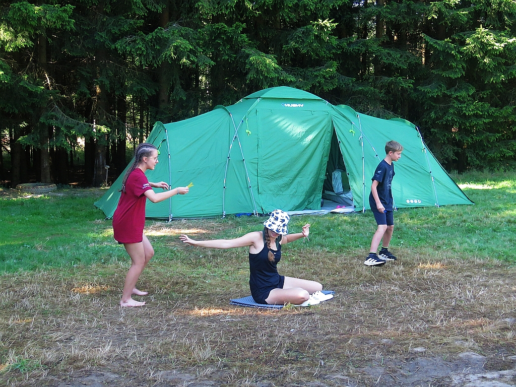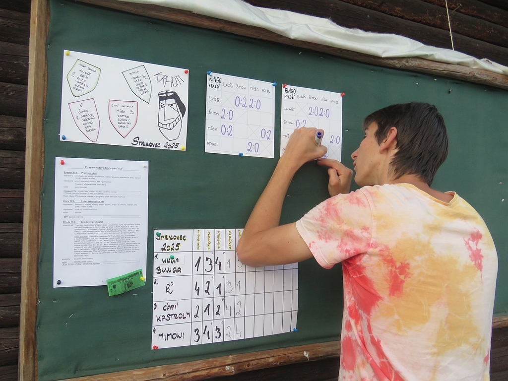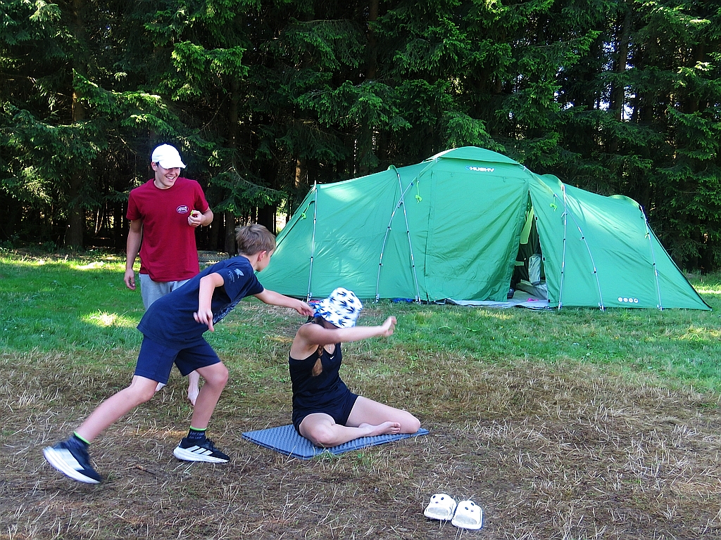 Atletický tábor Smrkovec 2025 Úterý, 2. 09. 2025 Láďa Kučera 2 097 x přečteno 3. den, úterý 12.8.2025 Připínáme kolíčky na klobouky, orientujeme se (a počítáme), hrajeme velké pexeso, opět koulíme, a zase hrajeme ringo