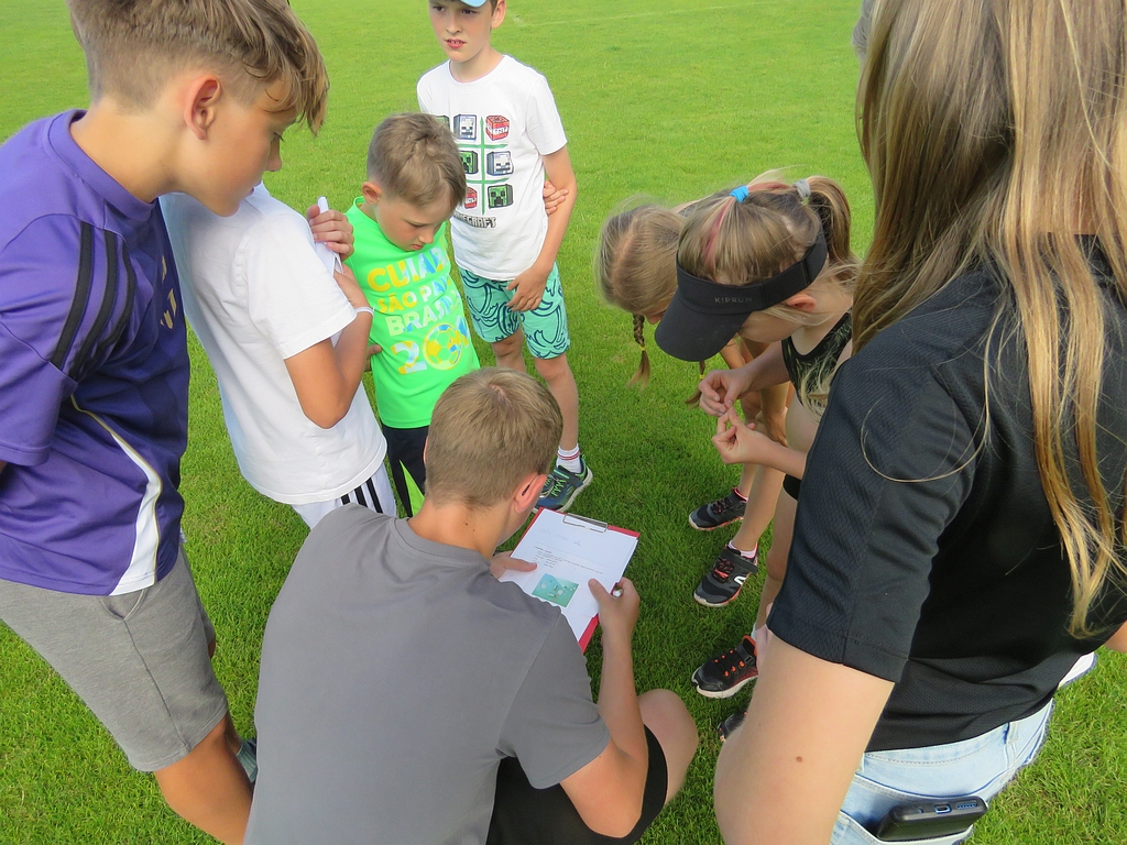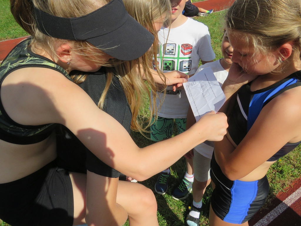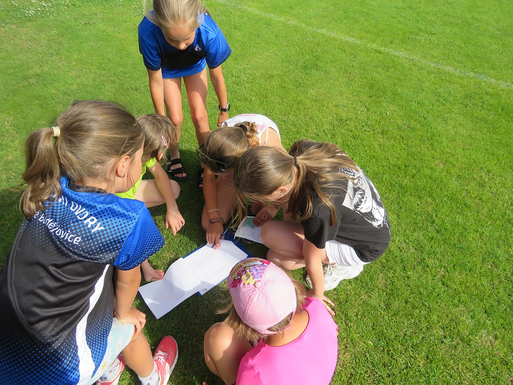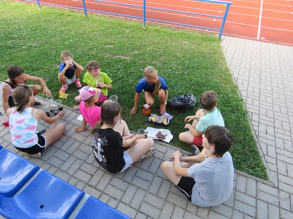 Již tradičně se jeden z posledních tréninků v červnu mění ve zběsilou honbu za pokladem, s pekelně težkými šiframi a mozek vařícími hádankami (aspoň tak to vypadalo podle vyjádření některých účastníků). Počasí nám přálo, dětičky běhaly po stadionu a luštily, rodiče a trenéři u skladu nářadí mezitím popíjeli, grilovali, ochutnávali, besedovali a všichni si to užívali.