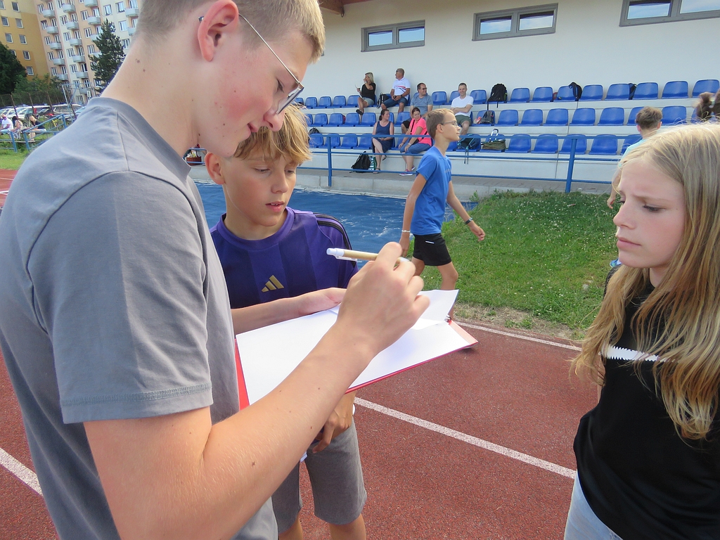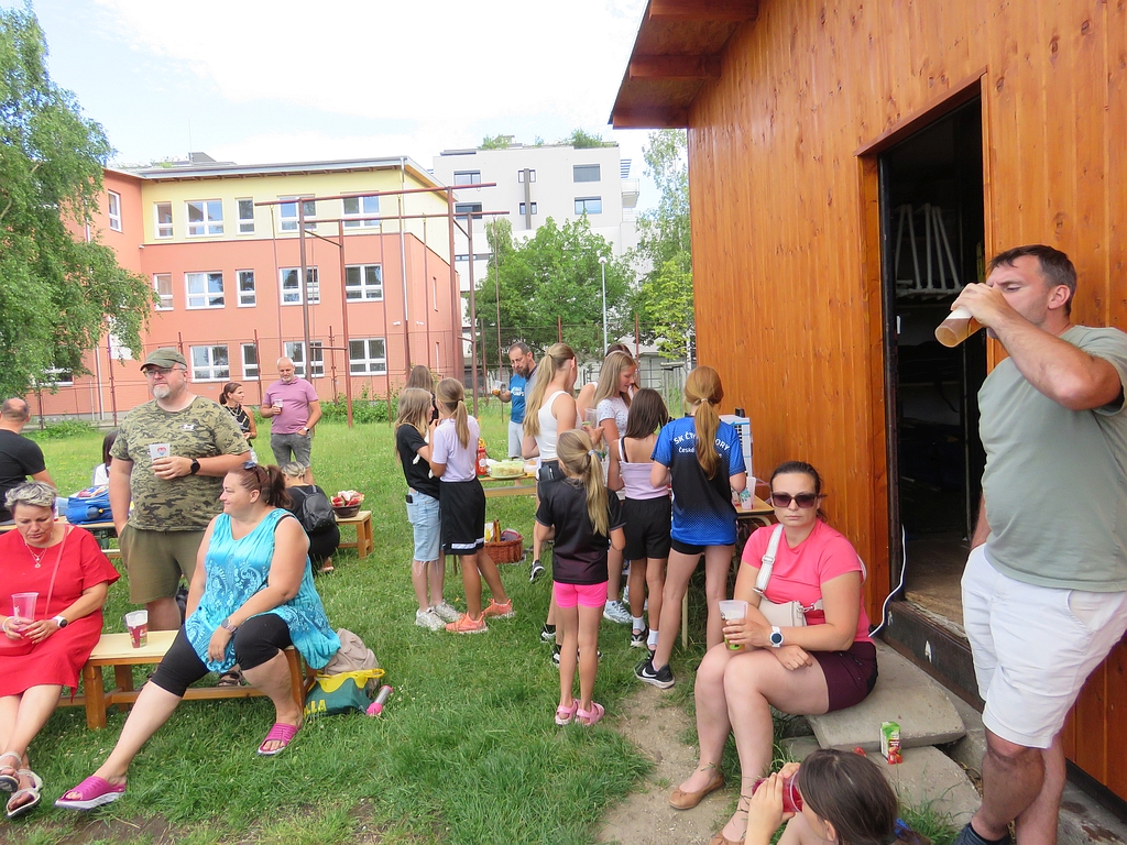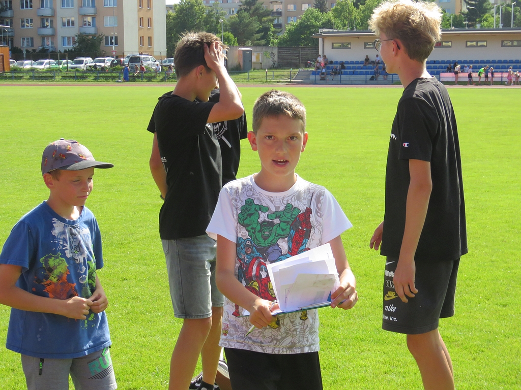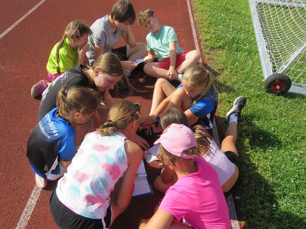 Již tradičně se jeden z posledních tréninků v červnu mění ve zběsilou honbu za pokladem, s pekelně težkými šiframi a mozek vařícími hádankami (aspoň tak to vypadalo podle vyjádření některých účastníků). Počasí nám přálo, dětičky běhaly po stadionu a luštily, rodiče a trenéři u skladu nářadí mezitím popíjeli, grilovali, ochutnávali, besedovali a všichni si to užívali.