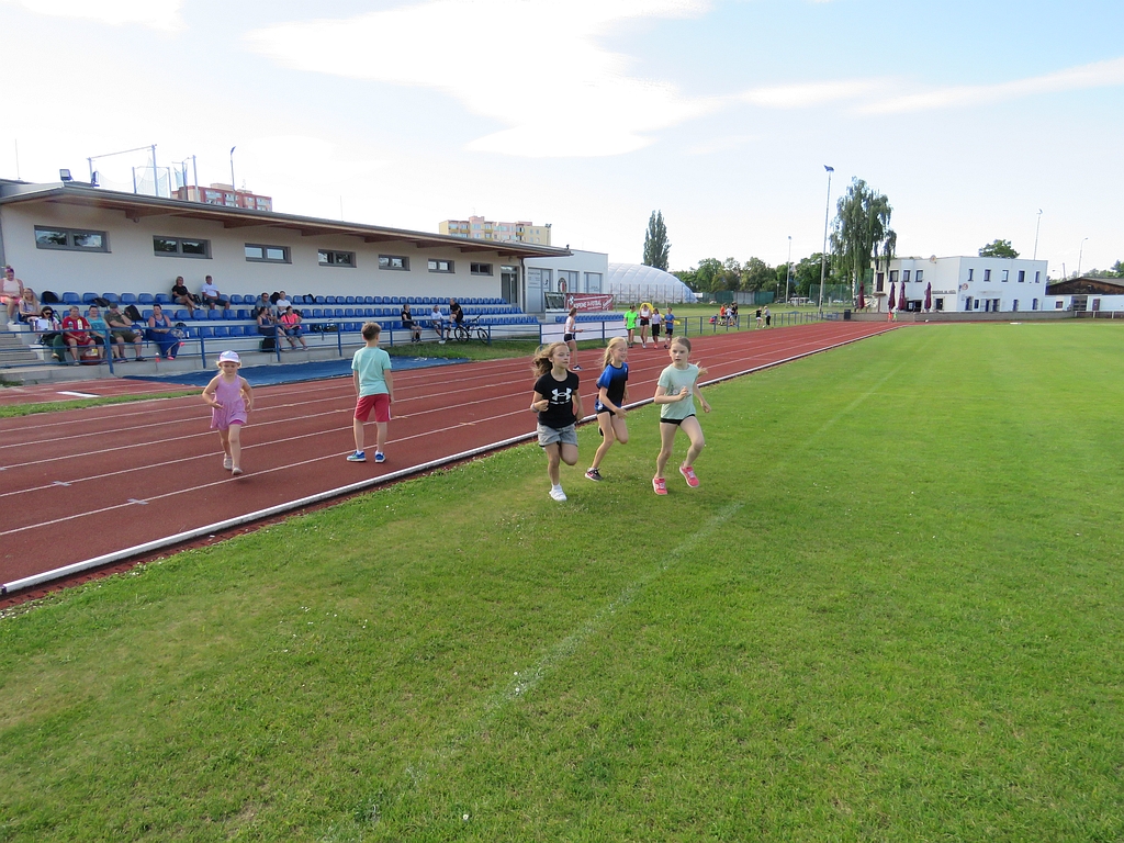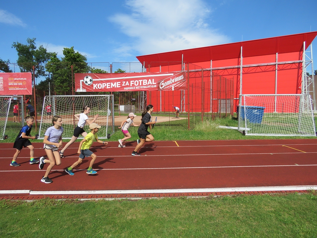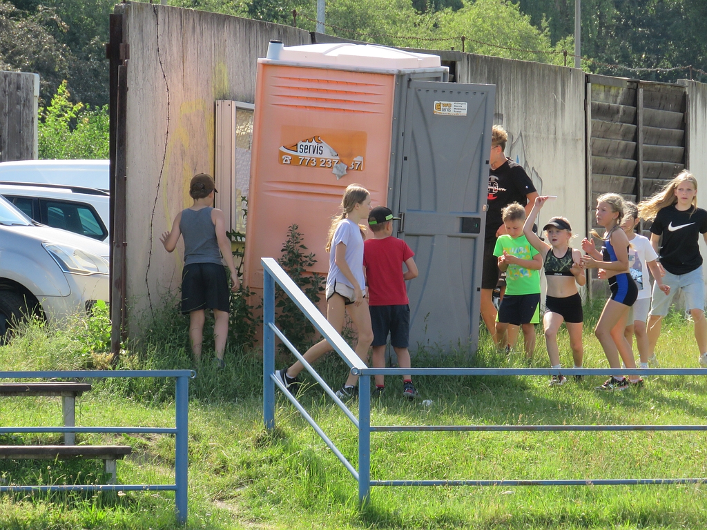 A jako třešničku na tomto letním dortíku se nakonec spustilo zavlažování fotbalového hřiště, to zřejmě ještě chybělo k naprostému štěstí atletů a atletíků, jak je vidět z fotek.